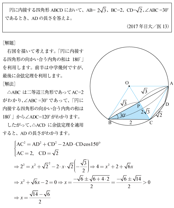 [B]円に内接する四角形の問題(2017年日大/医13)