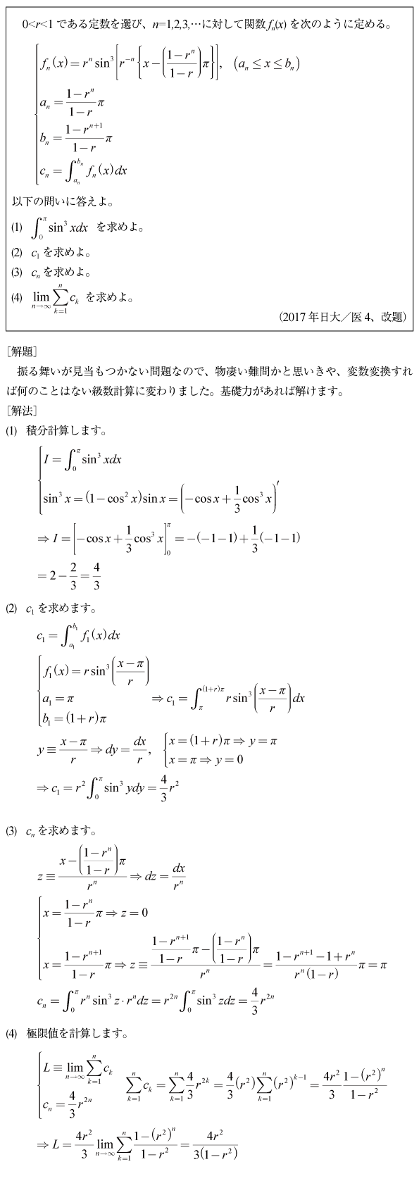 [C]複雑な三角関数の置換積分の問題(2017年日大/医4)
