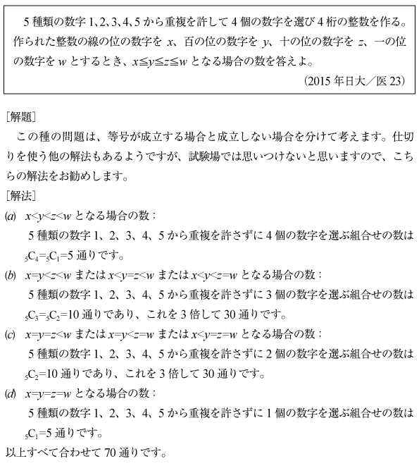 [B]各桁の数が順に大きくなる4桁の数の問題(2015年日大/医24)