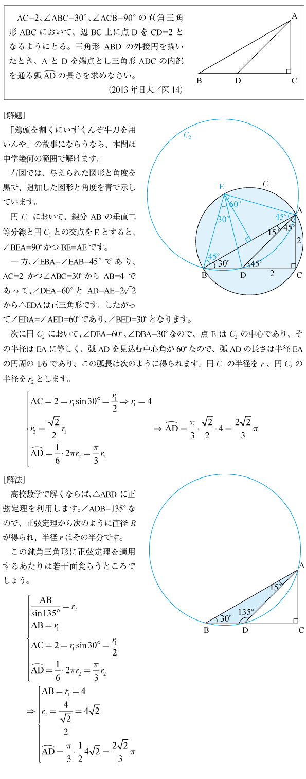 [B]正弦定理を使って外接円の半径を求める問題(2013年日大/医14)