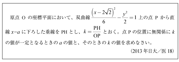 [B]双曲線の準線と距離の比の問題(2013年日大/医18)