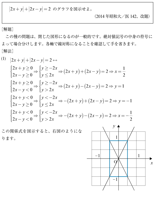 [A]簡単な絶対値式のグラフを描く問題(2014年昭和大/医142)