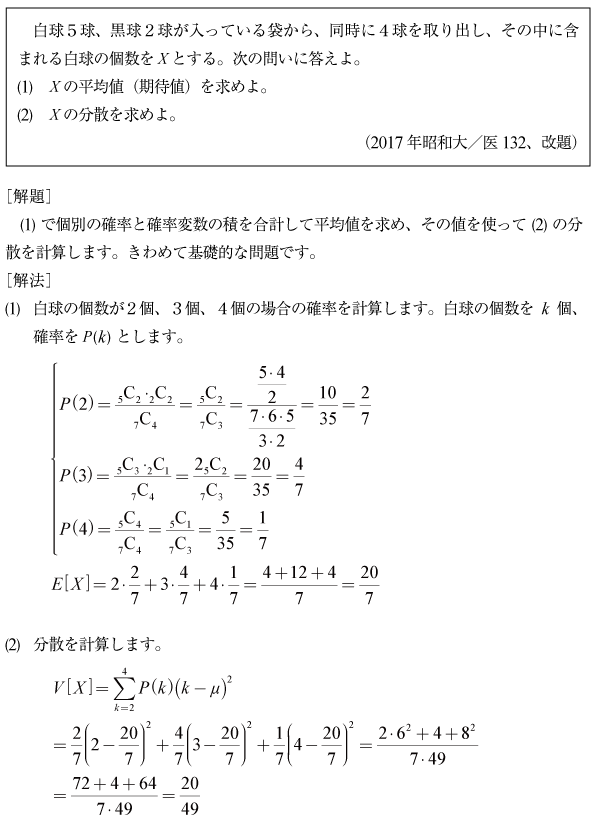 [B]確率と期待値と分散の問題(2017年昭和大/医132)