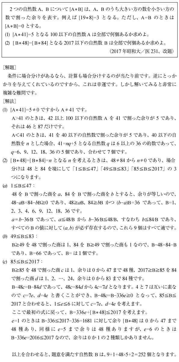 [C]割り算にかかわる新記号問題(2017年昭和大/医231)