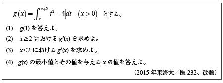 [C]絶対値記号付き2次関数の積分の最小値の問題(2015年東海大/医232)