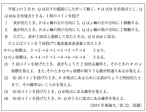 [B]コインによる格子点上の移動の確率の問題(2015年東海大/医22)