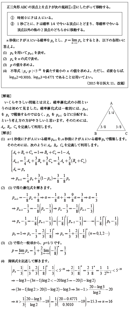[B]連立漸化式を単独漸化式に直して解く三角形上の問題