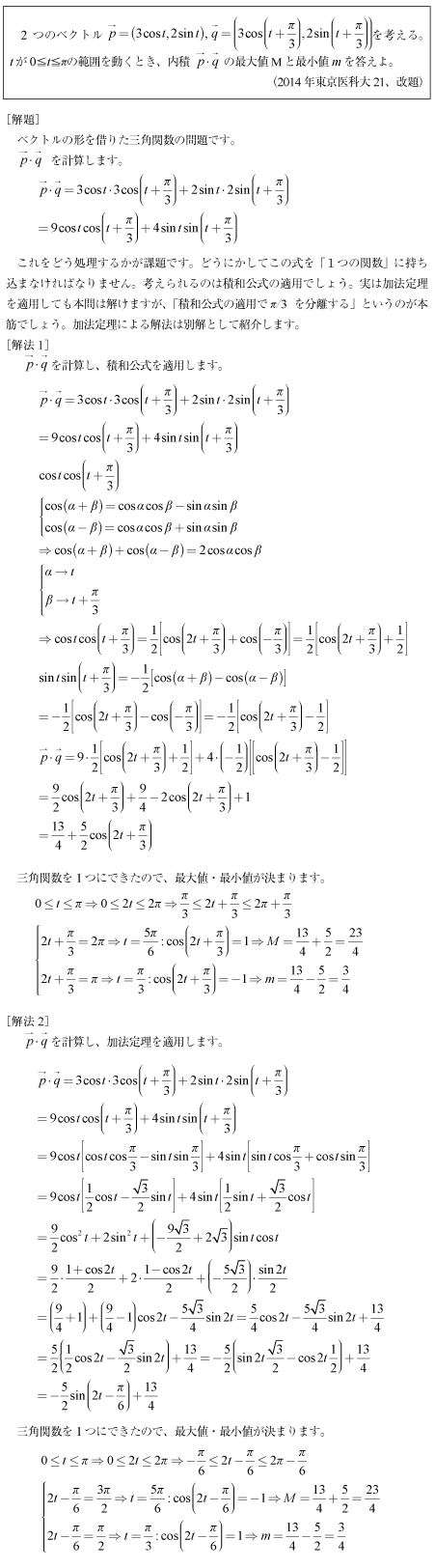 [B]三角関数が成分のベクトルの内積の値域の問題