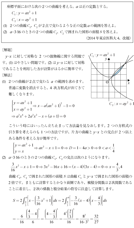 [C]放物線とその逆関数の交点や囲む面積の問題
