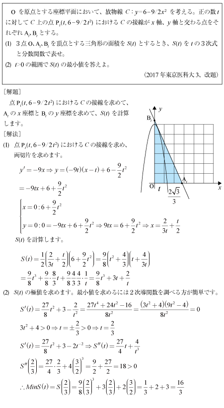 [B]放物線の接線がつくる三角形の面積の問題(2017年東京医科大3)