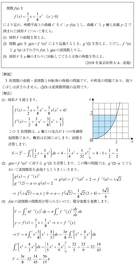 [C]3次関数の逆関数の問題(2018年東京医科大4)