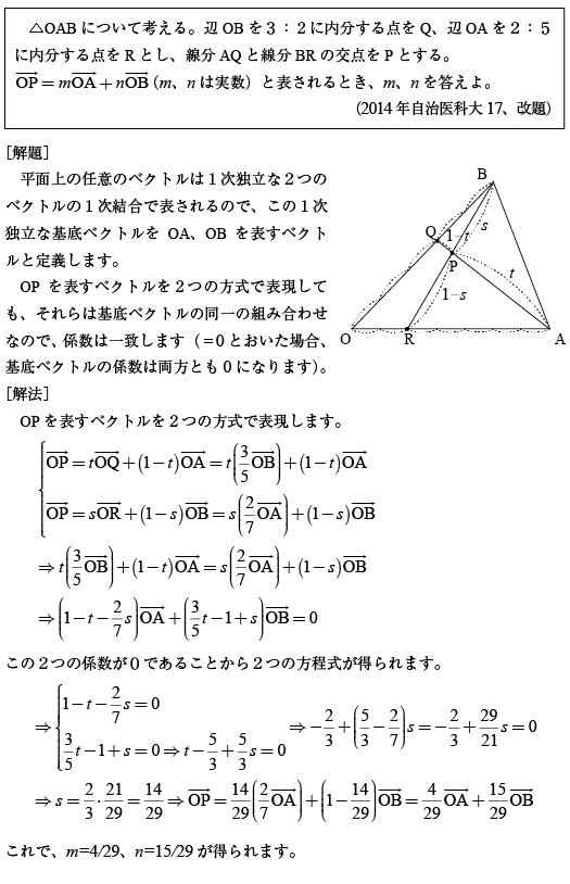 [C]ベクトル方程式を複数回利用する問題(2014年自治医大17)