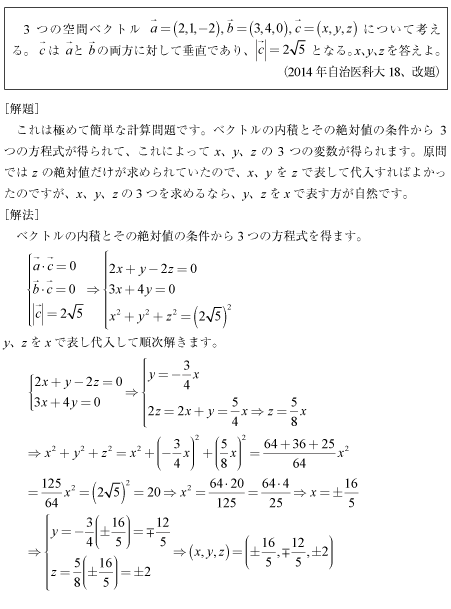 [B]空間ベクトルに関するやさしい問題(2014年自治医大18)