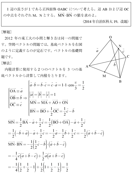 [B]正四面体内のベクトルの内積の問題(2014年自治医大19)