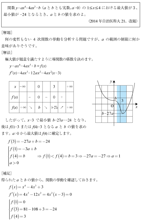 [A]4次関数の挙動の問題(2014年自治医大21)
