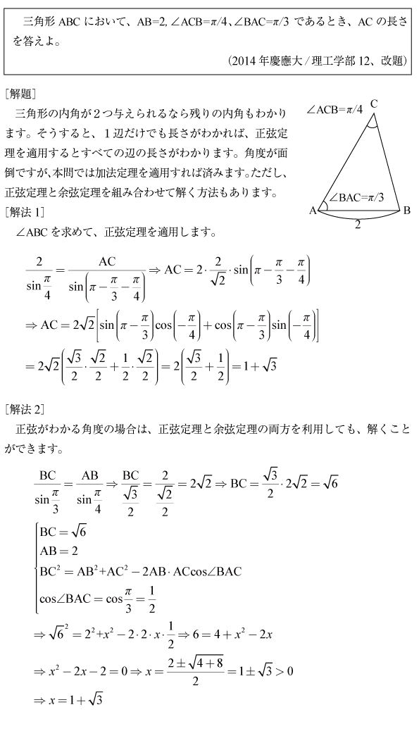 [B]正弦定理を使って辺の長さを求める問題(2014年慶應大/理工12)