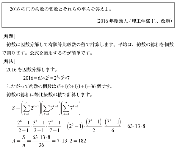 [A]約数の個数・平均についての問題(2016年慶應理工11)