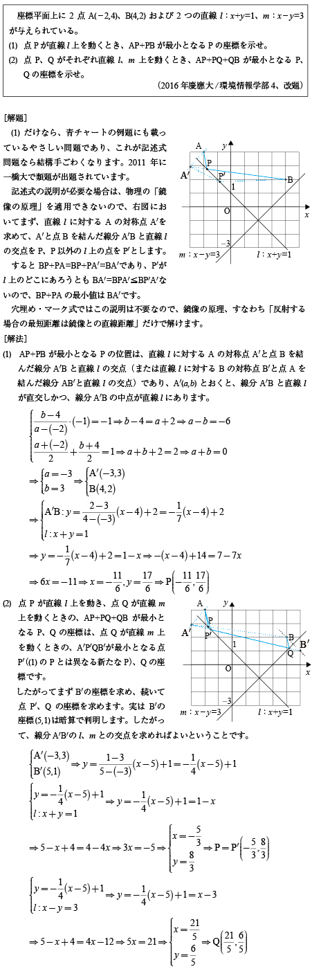 [C]平面上の鏡像の問題(2016年慶応大/環境情報4)