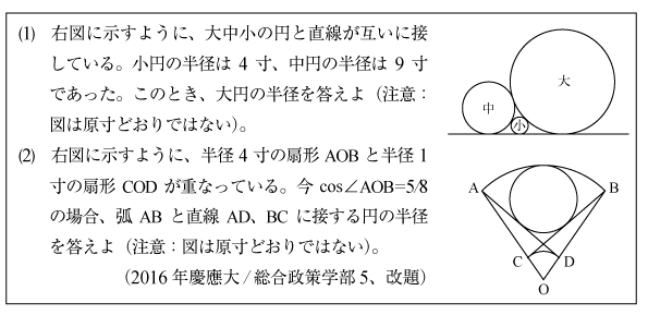 [B]平面図形に関するやさしい問題(2016年慶応大/総合政策5)