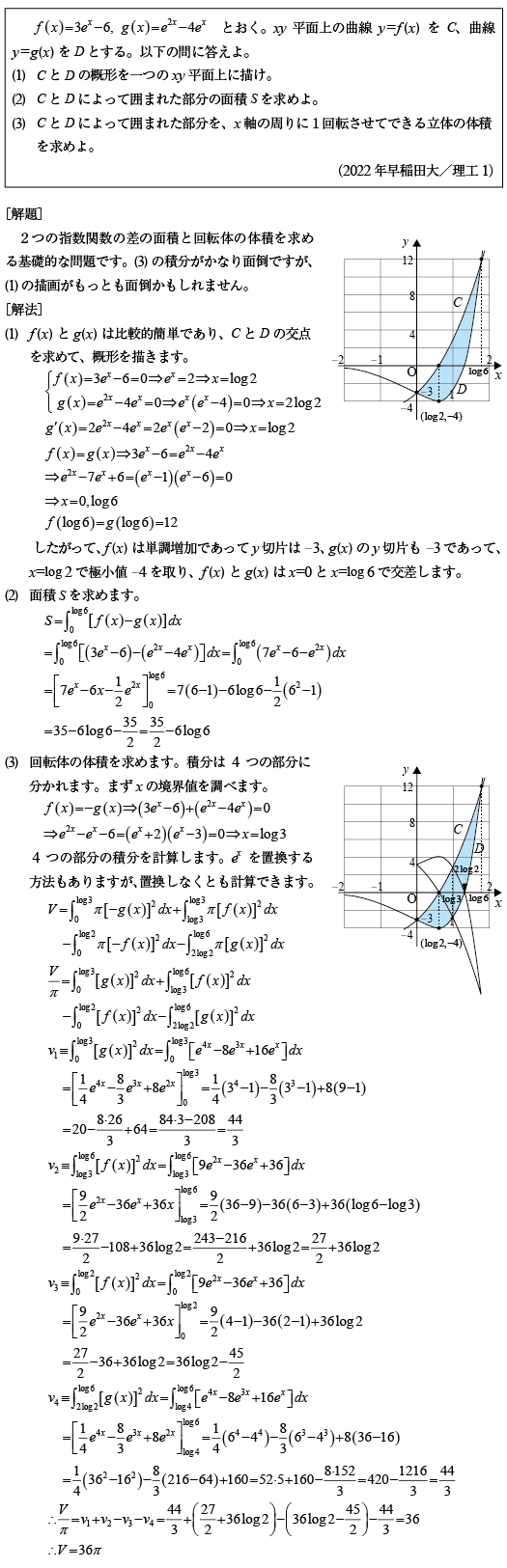 [B]指数関数で挟まれた領域の面積と体積の問題