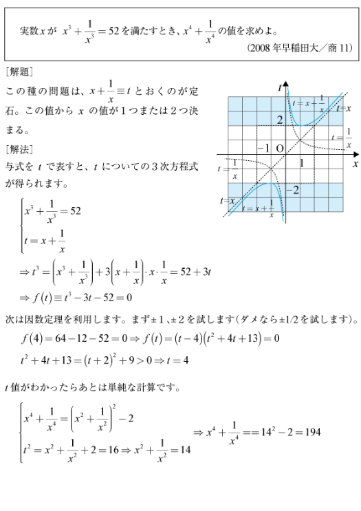 [B]t+1/tの応用問題(2008年早稲田大/商11)