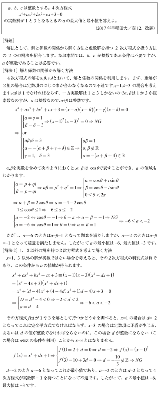 [B]4次方程式の係数の値域の問題(2017年早大/商12)