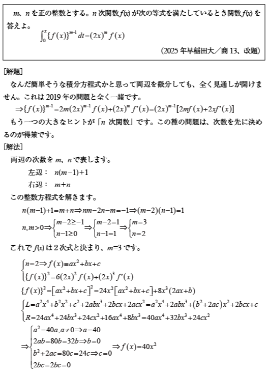 [B]整式の積分方程式の問題(2025年早大/商13)