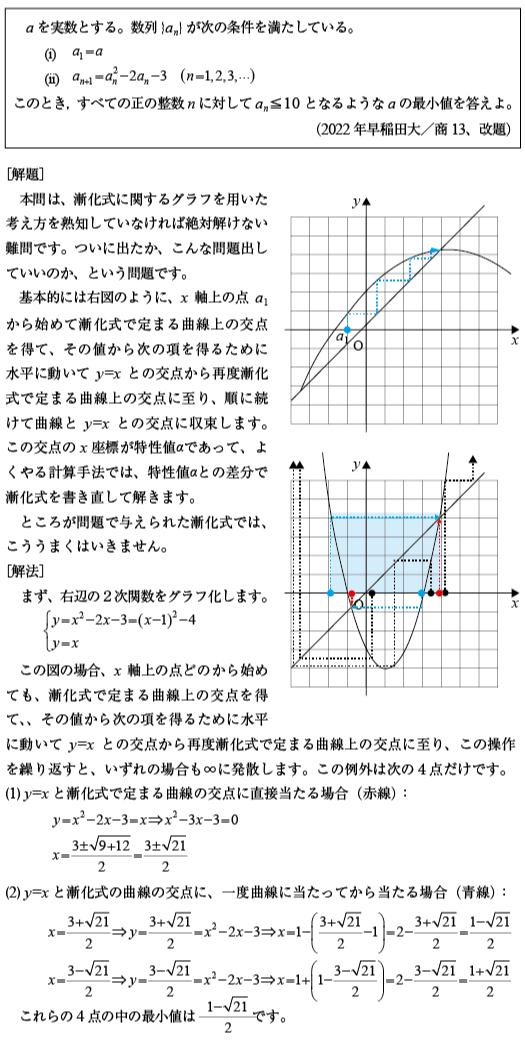 [C]特性根への収束を調べる漸化式の問題(2022年早大/商13)