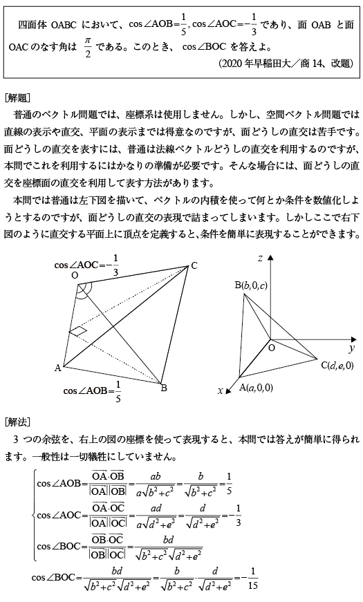 [B]直交する面を持つ四面体の問題(2020年早大/商14)