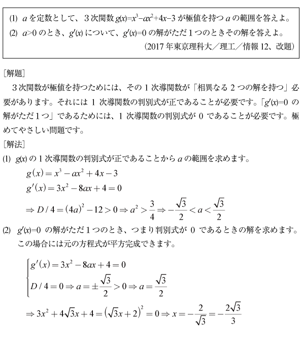 [B]3次関数の極値の問題(2017年東京理科大/理工/情報12)