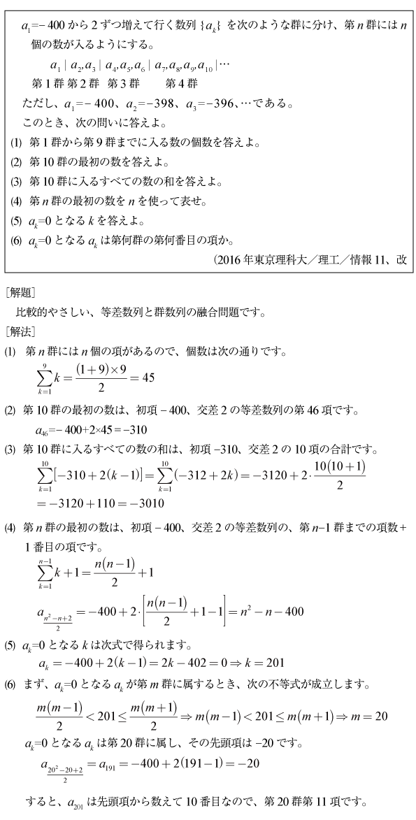 [B]群数列と等比数列の問題(2016年東京理科大/理工/情報11)