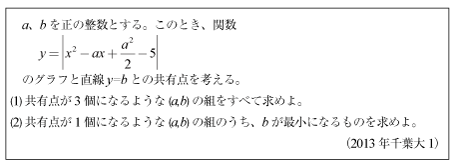 [B]絶対値記号付き2次関数と直線の交点数の問題(2013年千葉大1)