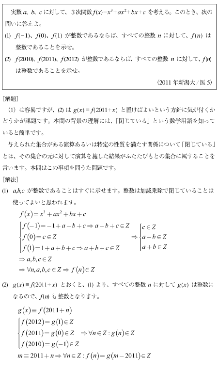 [B]整数係数3次多項式の整数性の証明問題(2011年新潟大/医5)