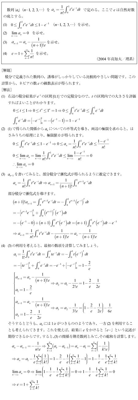 [C]指数関数の積分数列の問題(2004年高知大/理系)