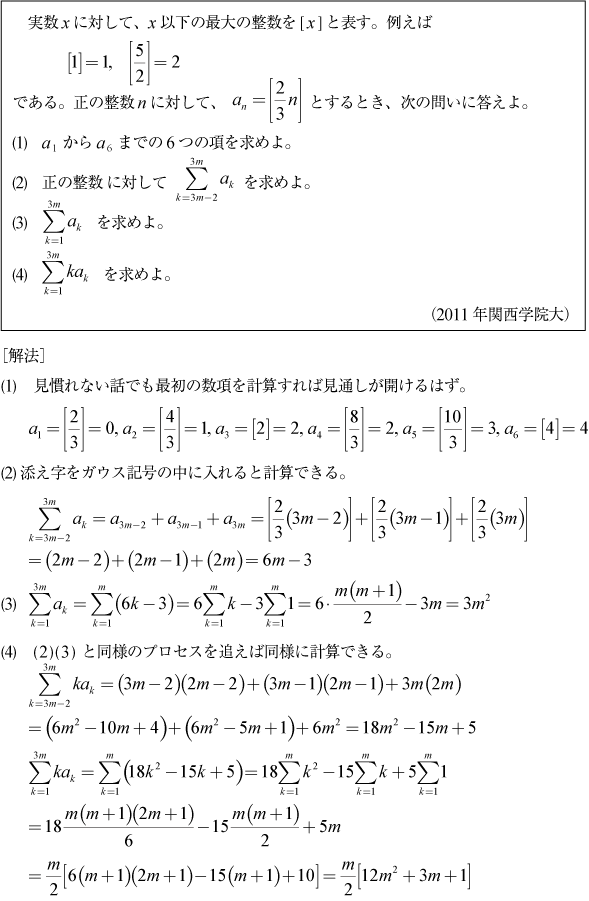 [C]ガウス記号で表された数列の問題(2011年関西学院大理系3)