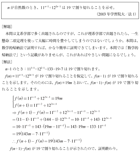[B]数学的帰納法を使えば簡単に証明できる問題(2003年学習院大/法1)