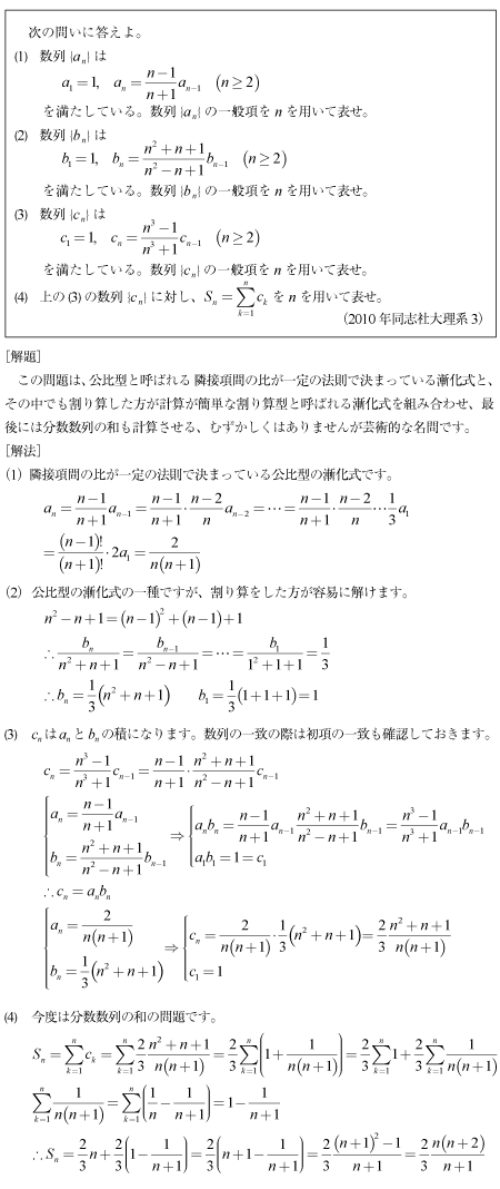 [B]公比型漸化式の複合問題(2010年同志社大理系3)