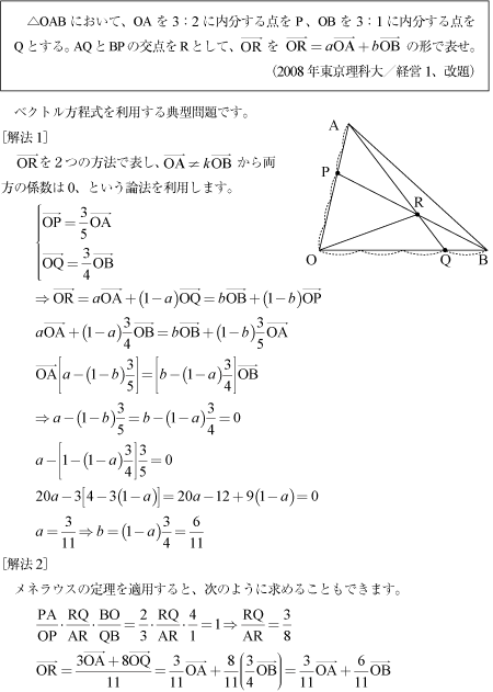 [A]ベクトル方程式の交点を求める問題(2008年東京理科大/経営1)