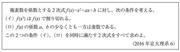[E]2次方程式を決定する問題(2016年京大/理系6)
