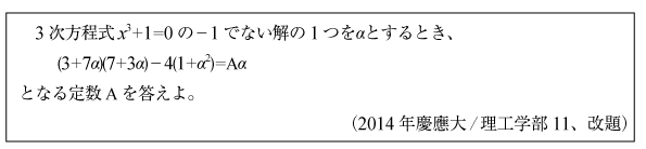 [A]3次方程式の解を利用する問題(2014年慶應大/理工11)
