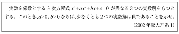 [B]3次方程式の解の正負を調べる問題(2002年阪大理系1)