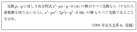 [B]2つの3次方程式の実数解の問題(1991年京大文系4)