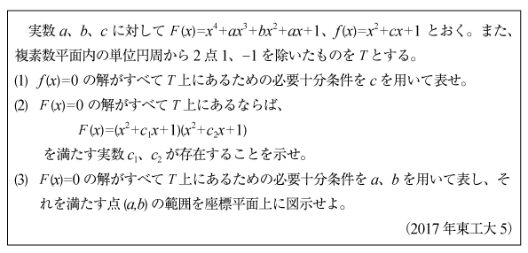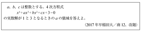 [B]4次方程式の係数の値域の問題(2017年早大/商12)