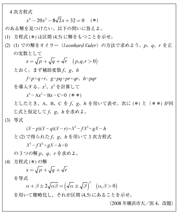 [C]4次方程式を解く問題(2008年横浜市大/医4)