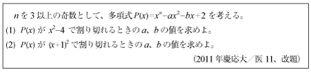 [B]2次式で割る因数定理の問題(2011年慶大/医11)