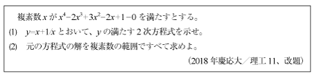 [A]相反方程式の問題(2018年慶応大/理工11)