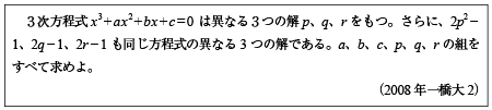 [B]3次方程式の2組の相異なる3つの解の問題(2008年一橋大2)