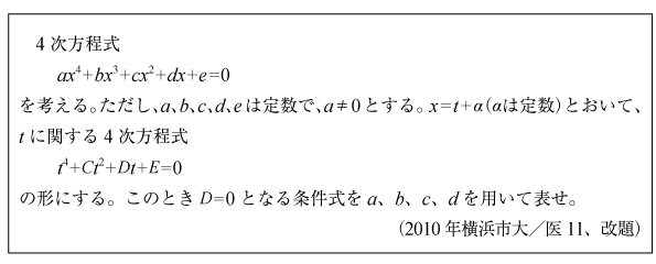 [A]4次方程式の奇数次項を消去する問題(2010年横浜市大/医11)