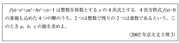 [C]4次方程式の解と係数の関係の問題(2002年京大文3理3)