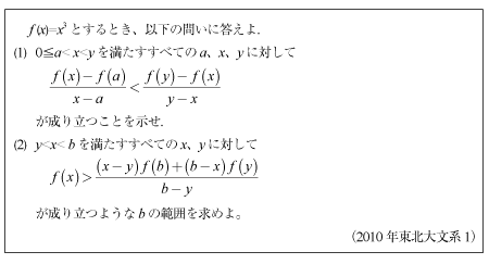 [B]3次関数/凸関数の不等式の問題(2010年東北大文系1)